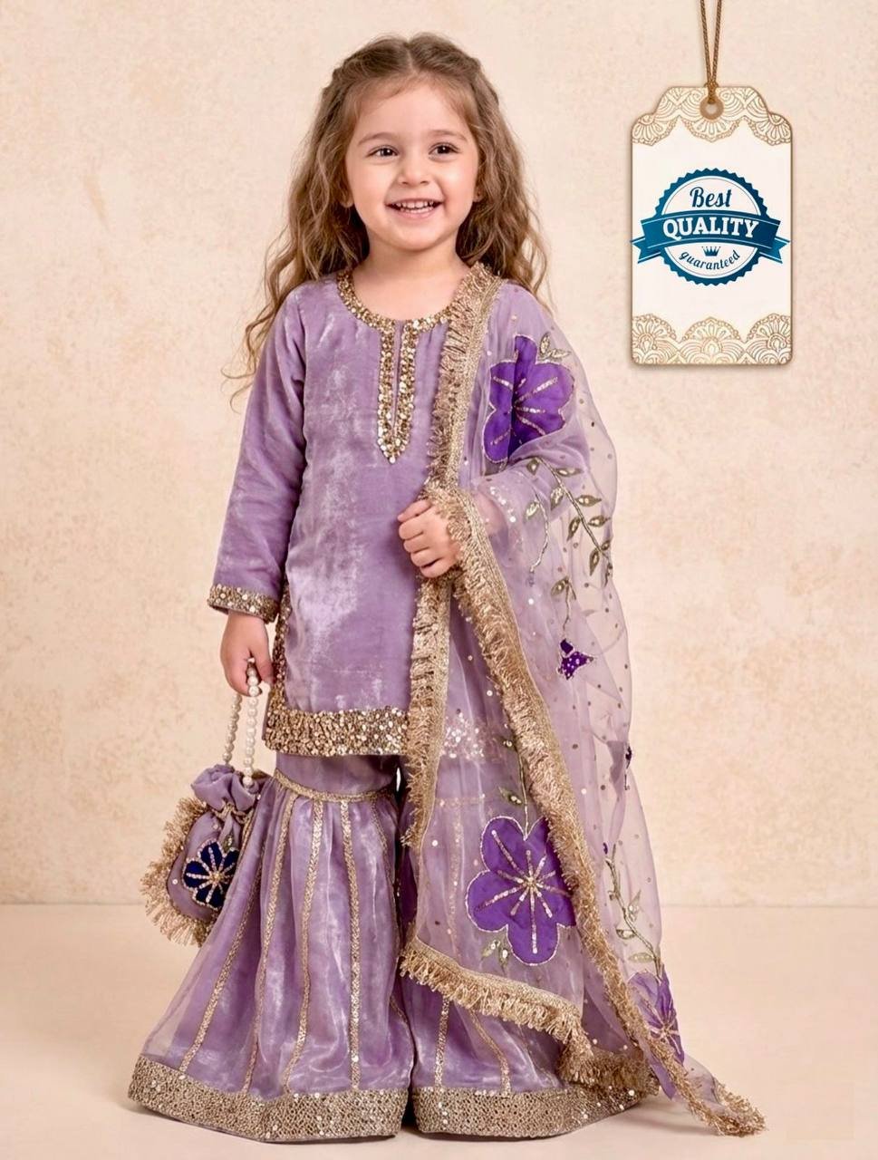 Be the first to review “Baby 242 Purple Gmy Silk Sharara Suit With Sequence Embroidery Work”