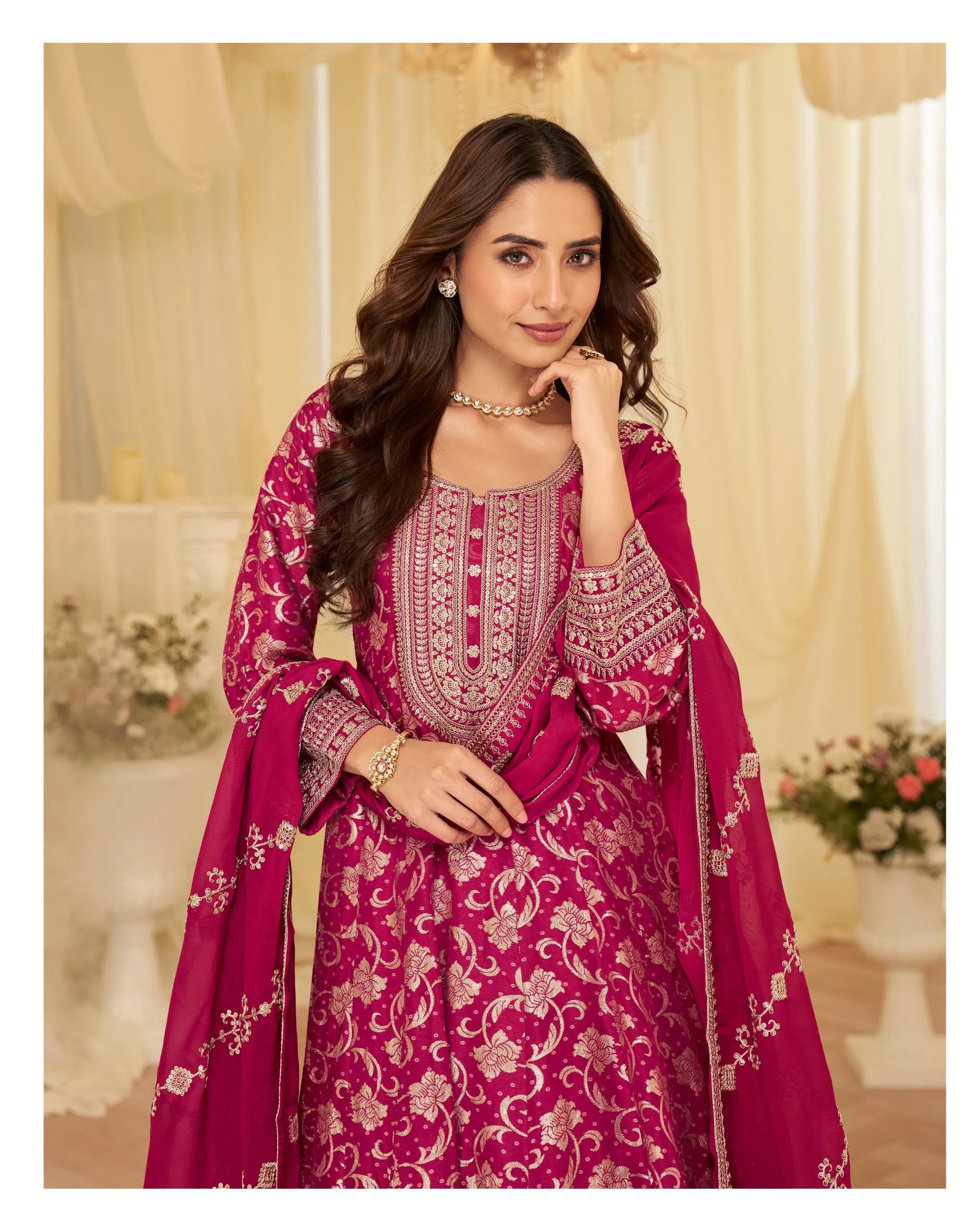 (Heavy Look Front And Back Embroidered Pure Viscose Jacquard Silk Gown With Heavy Embroidered Dupatta)