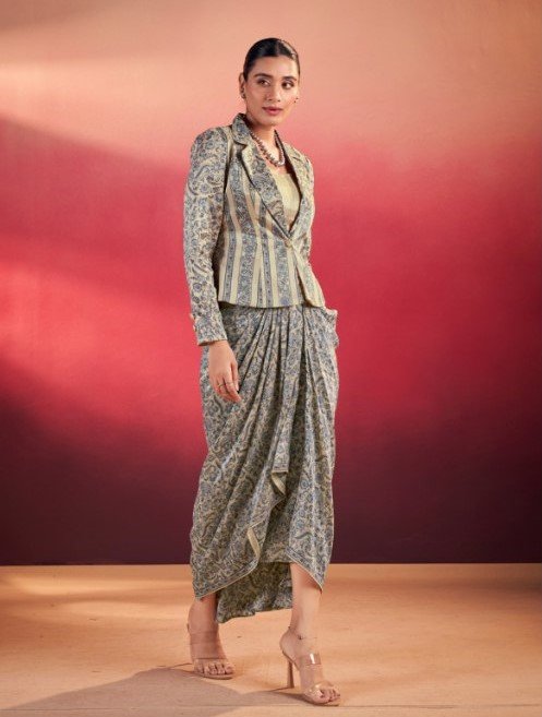 Product Name WMN 1316 Tasar Silk Printed Party Wear Indo Western Collection